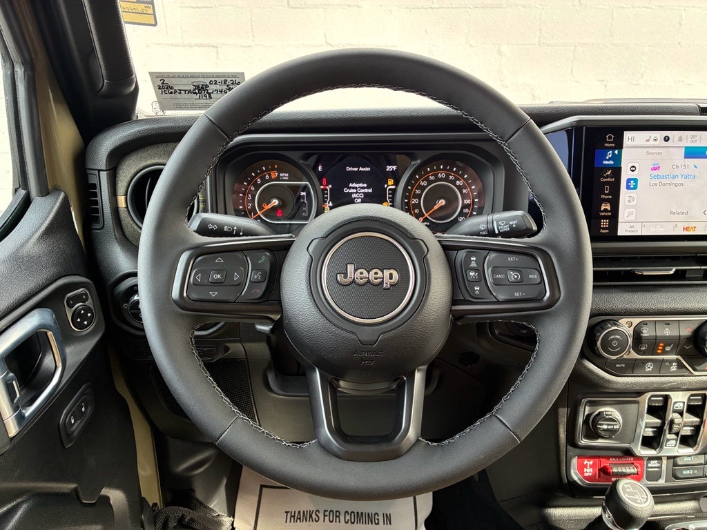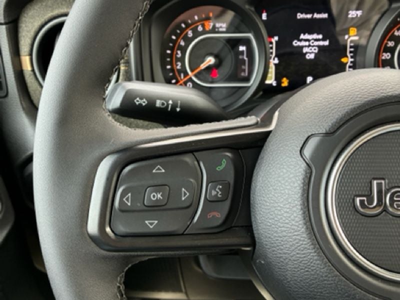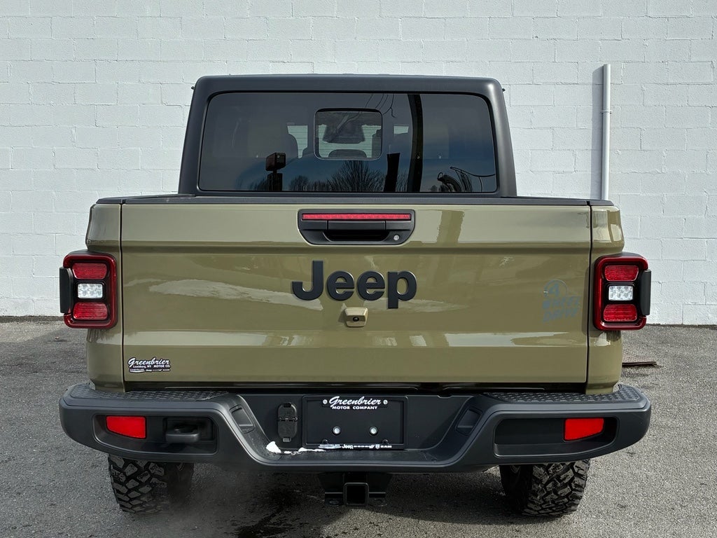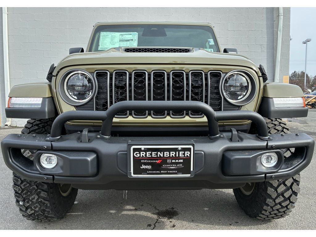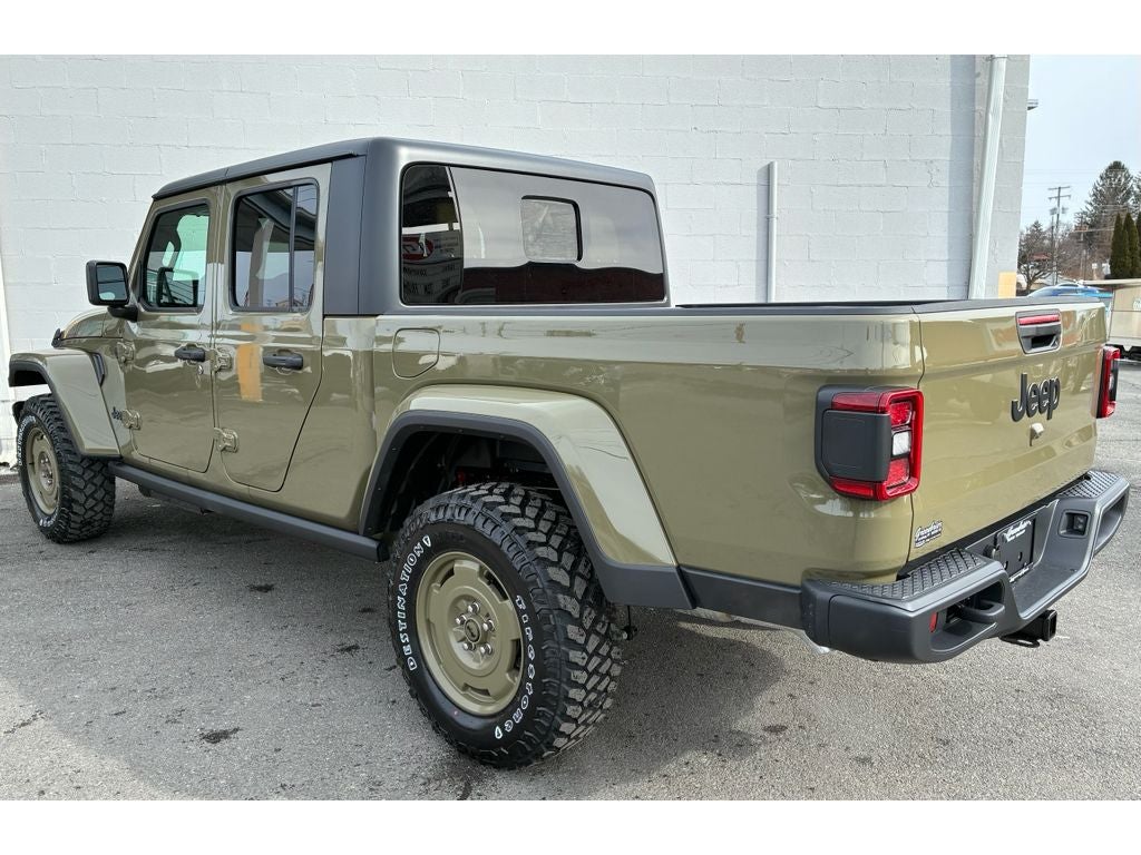 Convenience Group: Emergency/Assistance Call; Front Door Locks 2-Door Passive Entry; Remote Start System; Cluster 7.0" TFT Color Display; Universal Garage Door Opener; Daytime Running Lamp System; Heated Front Seats; Air Conditioning W/Auto Temp Control; Heated Steering Wheel; Corning Gorilla Glass. Quick Order Package 24T Willys 41: LED Taillamps; Protection Sill Rails; Willys '41 Retro Edition Gladiator Decal; MOPAR Black Hood Graphic; 4WD Willys '41 Tailgate Decal; MOPAR All-Weather Slush Mats; Willys '41; LT255/75R17C OWL On/Off Road Tires; Body Color Fender Flares (2-Piece); Front Heavy Duty Red Accent Shock Absorbers; Daytime Running Lamps LED Accents; Front LED Fog Lamps; LED Premium Reflector Headlamps; E-Locker Rear Axle; Green Soul Cloth Wrapped Mid-Bolster; Corning Gorilla Glass; Trailer Hitch Zoom; Class IV Receiver Hitch; Security Alarm; Performance Hood; Steel Front Bumper; 17" X 7.5" Fully Painted Wheels; Advanced Brake Assist; Willys Suspension; Heavy Duty Engine Cooling; Automatic Headlamps; Air Conditioning W/Auto Temp Control; 5. 950 lbs GVWR; Deep Tint Sunscreen Windows; MOPAR Triple Hoop Grille Guard; Off-Road Plus Mode; Central ADAS Decision Module (CADM); Willys '41 US Edition U.S. Hood Decal; Full Speed Forward Collision Warning Plus; Rear Heavy Duty Red Accent Shock Absorbers; Front Door Locks 2-Door Passive Entry; 97 MPH Vehicle Max Speed Calibration; Cloth Low-Back Bucket Seats; Cluster 7.0" TFT Color Display; Power Heated Mirrors; Daytime Running Lamp System; Auxiliary Switches; Premium Wrapped Steering Wheel; Sun Visors W/Illuminated Vanity Mirrors. Black 3-Piece Hard Top. 41. **Equipment listed is based on original vehicle build and subject to change. Please confirm the accuracy of the included equipment by calling the dealer prior to purchase.**
