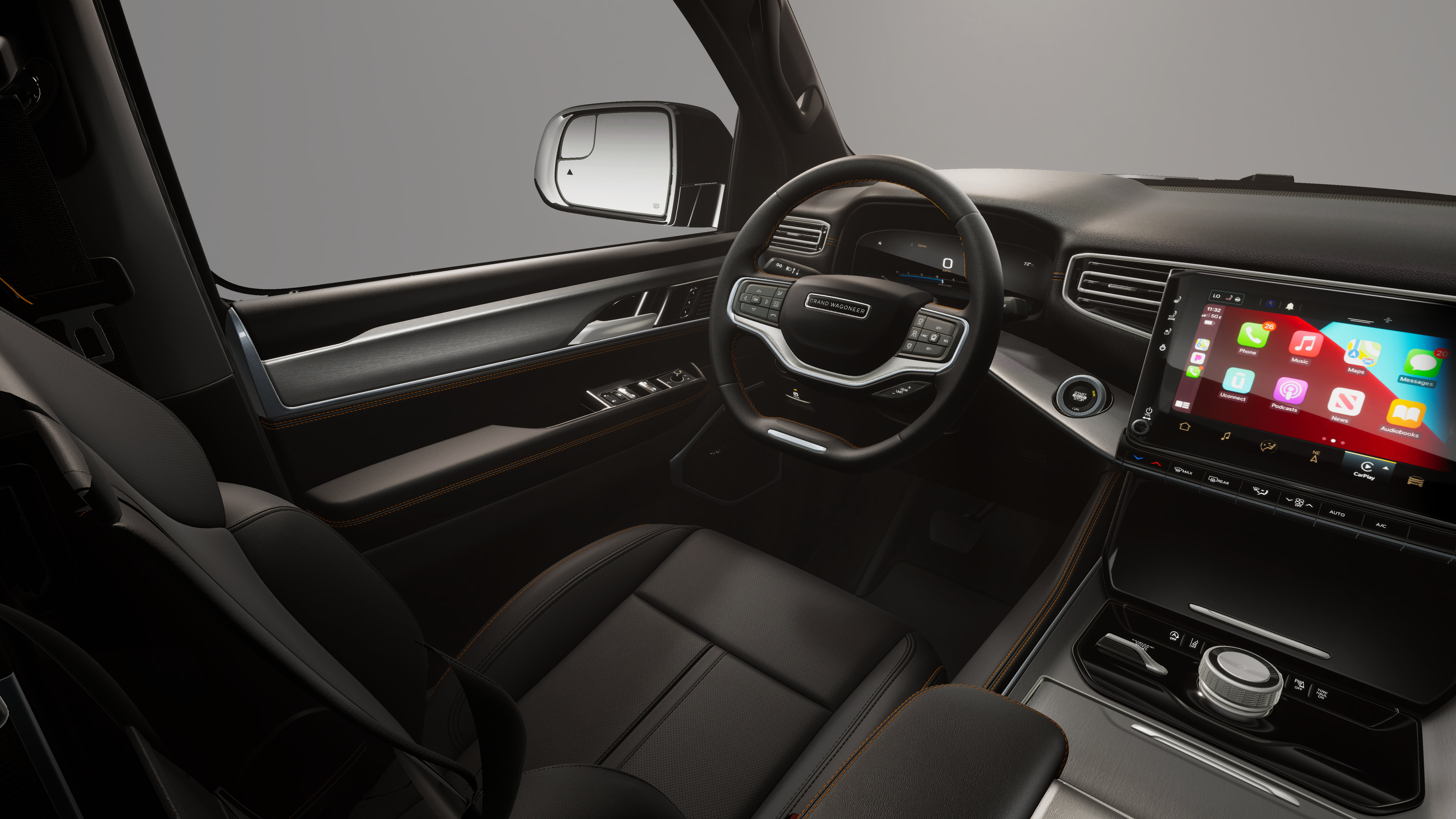 It's Forward Collision Warning system alerts the driver to potential front-end collisions, enhancing safety. This 1/2 ton suv features a hands-free Bluetooth® phone system. This unit has auto-adjust speed for safe following. The leather seats in this Jeep Grand Wagoneer are a must for buyers looking for comfort, durability, and style. See what's behind you with the back up camera on the vehicle. The installed navigation system will keep you on the right path. The vehicle comes equipped with Android Auto for seamless smartphone integration on the road. Start this vehicle from inside with remote start. Keep your hands warm all winter with a heated steering wheel in the Jeep Grand Wagoneer . Apple CarPlay: Seamless smartphone integration for it - stay connected and entertained on the go! When you encounter slick or muddy roads, you can engage the four wheel drive on this 1/2 ton suv and drive with confidence.