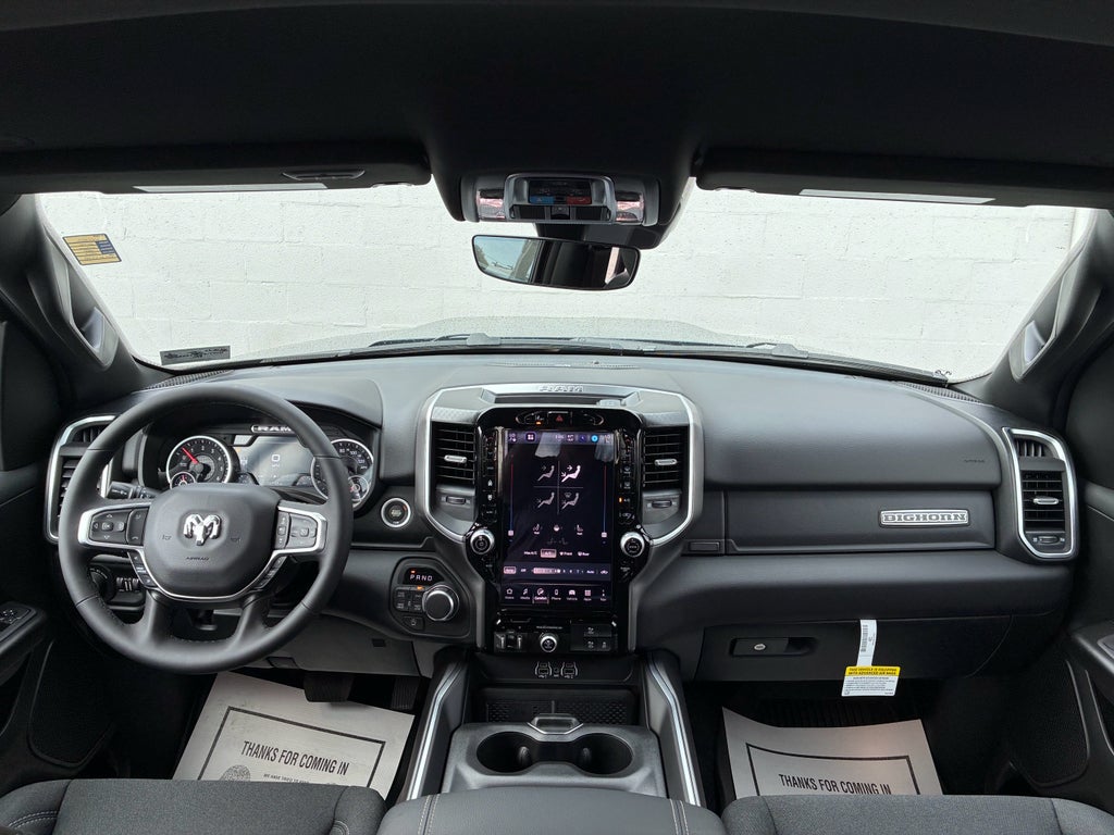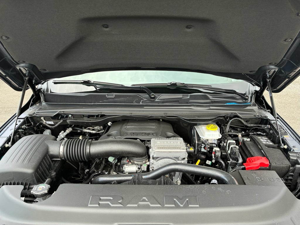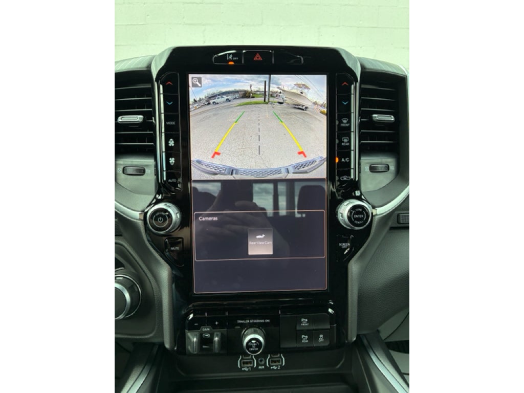 Quick Order Package 27Z Big Horn. Big Horn Level 2 Equipment Group: Google Android Auto; SiriusXM Radio Service; USB Host Flip; Power Adjustable Pedals; Leather Wrapped Steering Wheel; Integrated Voice Command with Bluetooth®; 12" Touchscreen Display; Glove Box Lamp; Auto Power-Folding Mirrors; 115V Auxiliary Rear Power Outlet; Media Hub with 2 Charge Only USBs; Heated Front Seats; Security Alarm; Black Premium Power Mirrors; Apple CarPlay; Premium Overhead Console; 9 Amplified Speakers with Subwoofer; Disassociated Touchscreen Display; Body Color Fender Flares; Remote Tailgate Release; 115V Auxiliary Power Outlet; LED Dome Lamp with On/off Switch; Universal Garage Door Opener; 2nd Row in Floor Storage Bins; Sun Visors with Illuminated Vanity Mirrors; LED Footwell Lighting; Rear Window Defroster; Integrated Center Stack Radio; Rear View Auto Dim Mirror; Rear Power Sliding Window; Connectivity - US/Canada; GPS Navigation; 4G LTE Wi-Fi Hot Spot; GPS Antenna Input; Overhead LED Lamps; Exterior Mirrors with Heating Element; Auto Dim Exterior Driver Mirror; SiriusXM with 360L; Global Telematics Box Module; Connected Travel and Traffic Services; Heated Steering Wheel; Black Exterior Mirrors; Configurable Drive Mode; 400W Inverter; HD Radio; Deluxe Cloth Bucket Seats; Uconnect 5 Navigation with 12.0" Display Radio; Exterior Mirrors with Supplemental Signals; Steering Wheel Mounted Audio Controls; Exterior Mirrors Courtesy Lamps; Air Conditioning ATC with Dual Zone Control; Cluster 7.0" TFT Color Display; Convex Wide-Angle Exterior Mirror Insert. Night Edition: 275/55R20 OWL All Season Tires; Accent Color Premium Power Mirrors; Exterior Mirrors with Supplemental Signals; Black Headlamp Bezels; Exterior Mirrors Courtesy Lamps; Grille Black Surround Black Mesh; Auto Power-Folding Mirrors; Exterior Mirrors with Heating Element; 20" X 9.0" Aluminum Painted Clad Wheels; Auto Dim Exterior Driver Mirror; Black Exterior Truck Badging; Anti-Spin Differential Rear Axle; Accent Color Door Handles; Accent Color Tailgate Handle; Black Interior Accents; Dual Exhaust with Black Tips; Body Color Front Bumper; Convex Wide-Angle Exterior Mirror Insert; Body Color Rear Bumper with Step Pads; Black Tail Lamp Bezels; RAM Grille Badge - Black; Black Painted Exterior Mirrors Caps. Trailer Tow Group II: Trailer Light Check; Trailer Brake Control; Accent Color Tailgate Handle; Trailer Reverse Steering Control; Trailer Tire Pressure Monitoring System. Quick Order Package 23Z Big Horn. 9 Amplified Speakers with Subwoofer. MOPAR Black Tubular Side Steps. Anti-Spin Differential Rear Axle. Trailer Brake Control. Forged Blue Metallic. MOPAR Front and Rear Rubber Floor Mats. 3.92 Rear Axle Ratio. **Equipment listed is based on original vehicle build and subject to change. Please confirm the accuracy of the included equipment by calling the dealer prior to purchase.**
