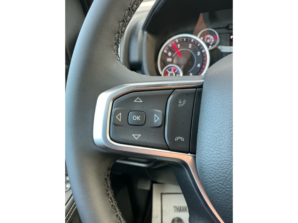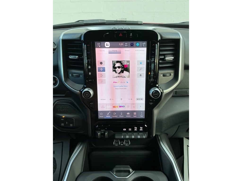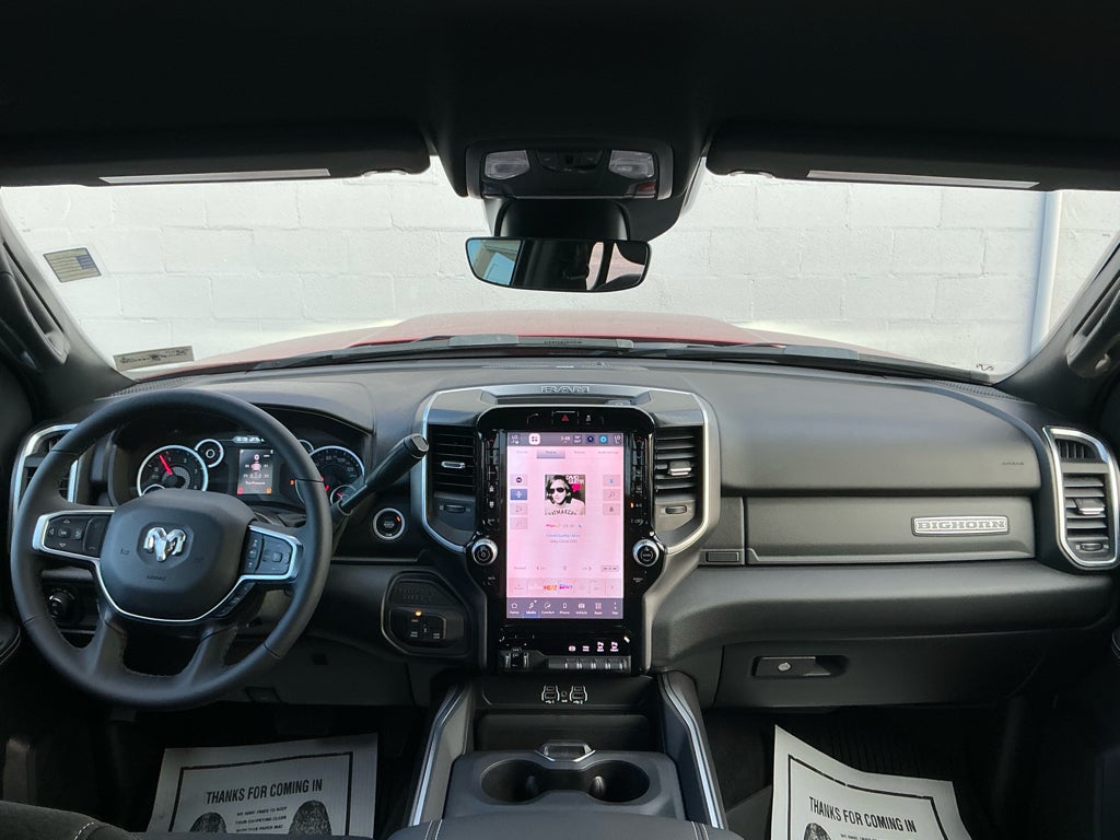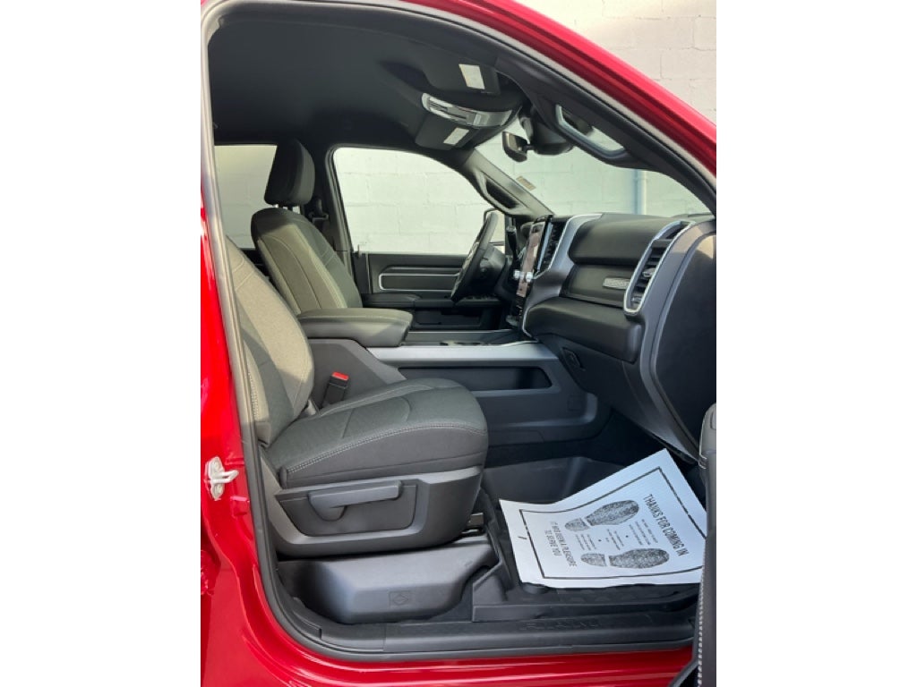 Quick Order Package 24Z Big Horn. Night Edition: Firestone Brand Tires; Gloss Black Nostrils/molded in Color Black Grille; LT285/60R20E OWL On/off Road Tires; Black Exterior Truck Badging; 20" X 8.0" Black Painted Aluminum Wheels; Body Color Grille Surround; Black Interior Accents; Black Wheel Center Hub; Painted Front Bumper; Painted Rear Bumper. Big Horn Level 1 Plus Equipment Group: Google Android Auto; SiriusXM Radio Service; For Details Visit DriveUconnect.com; For More Info. Call 800-643-2112; Integrated Voice Command with Bluetooth®; Emergency Vehicle Alert System (EVAS); 12" Touchscreen Display; Glove Box Lamp; Auto Power-Folding Mirrors; Footwell Courtesy Lamp; Mirror Running Lights; MOPAR Deployable Bed Step; Alexa Built-In; Apple CarPlay; Power-Adjustable Convex Aux Mirrors; Forward and Reverse Utility Lights; Locking Lower Glove Box; Remote Start System; 9 Alpine Speakers with Subwoofer; Disassociated Touchscreen Display; Dual Glove Boxes; 2nd Row in Floor Storage Bins; Rear View Auto Dim Mirror; Rear Dome with On/off Switch Lamp; LED Bed Lighting; Connectivity - US/Canada; GPS Navigation; 4G LTE Wi-Fi Hot Spot; GPS Antenna Input; Exterior Mirrors with Heating Element; SiriusXM with 360L; Global Telematics Box Module; Connected Travel and Traffic Services; Foam Bottle Insert (door Trim Panel); Black Exterior Mirrors; Big Horn Instrument Panel Badge; Off-Road Information Pages; Selectable Tire Fill Alert; Trailer Tow Pages; HD Radio; Uconnect 5 Navigation with 12.0" Display Radio; Power Heated Fold Telescopic Mirrors; Exterior Mirrors with Supplemental Signals; Steering Wheel Mounted Audio Controls; Exterior Mirrors Courtesy Lamps; Air Conditioning ATC with Dual Zone Control; MOPAR Spray in Bedliner; Power Adjust Mirrors; Luxury Steering Wheel; Power Telescoping Mirrors. Heated Seats and Wheel Group: Heated Front Seats; Heated Steering Wheel. Quick Order Package 2UZ Big Horn. 5th Wheel/gooseneck Towing Prep Group. Premium Cloth Bucket Seats. Remote Start System. Molten Red Pearlcoat. MOPAR Front and Rear Rubber Floor Mats. Power 2-Way Driver Lumbar Adjust. Clearance Lamps. **Equipment listed is based on original vehicle build and subject to change. Please confirm the accuracy of the included equipment by calling the dealer prior to purchase.**