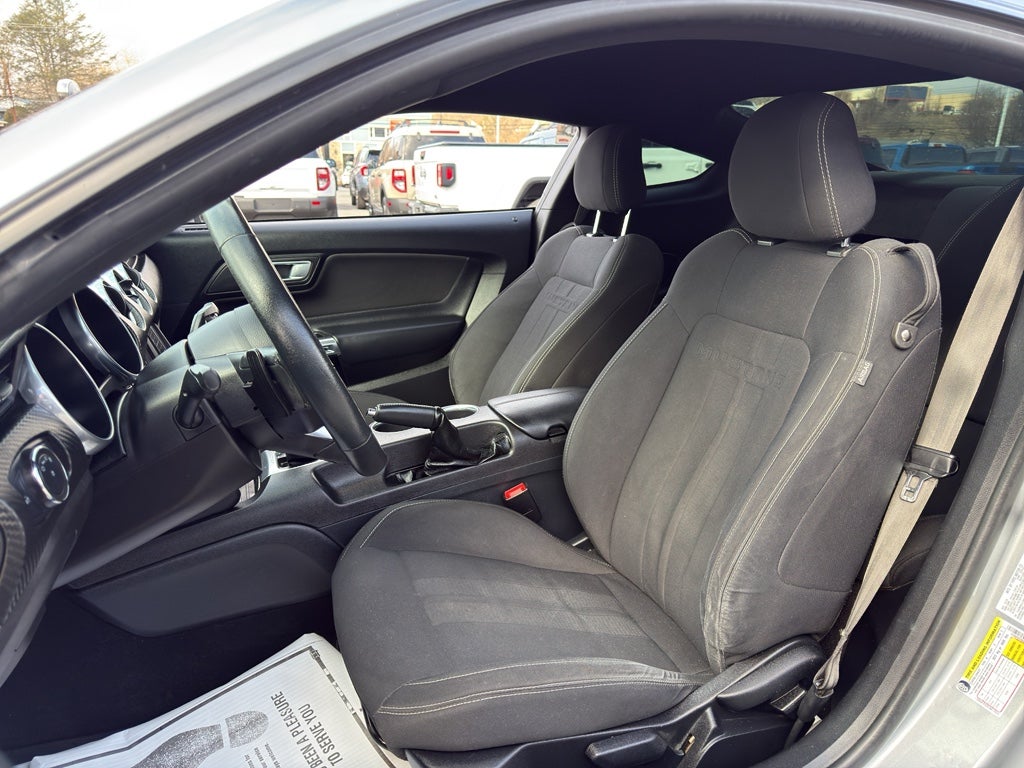 Protect the Ford Mustang from unwanted accidents with a cutting edge backup camera system. This unit features a hands-free Bluetooth® phone system. Start this vehicle from inside with remote start. The Ford Mustang has a 4 Cyl, 2.3L high output engine. This vehicle is rear wheel drive. Maintaining a stable interior temperature in this vehicle is easy with the climate control system. The vehicle gleams with an elegant silver clear coated finish. Electronic Stability Control is one of many advanced safety features on the Ford Mustang. This vehicle is equipped with a gasoline engine. Easily set your speed in the vehicle with a state of the art cruise control system. Increase or decrease velocity with the touch of a button. The high efficiency automatic transmission shifts smoothly and allows you to relax while driving. This small car is easy to park.