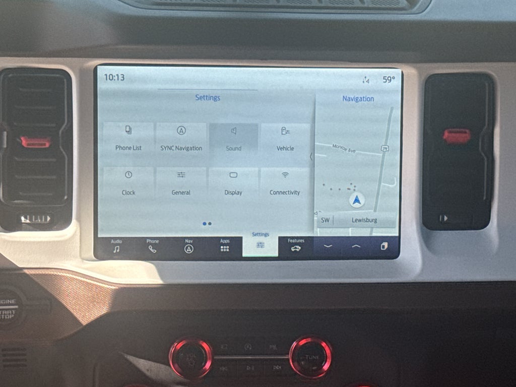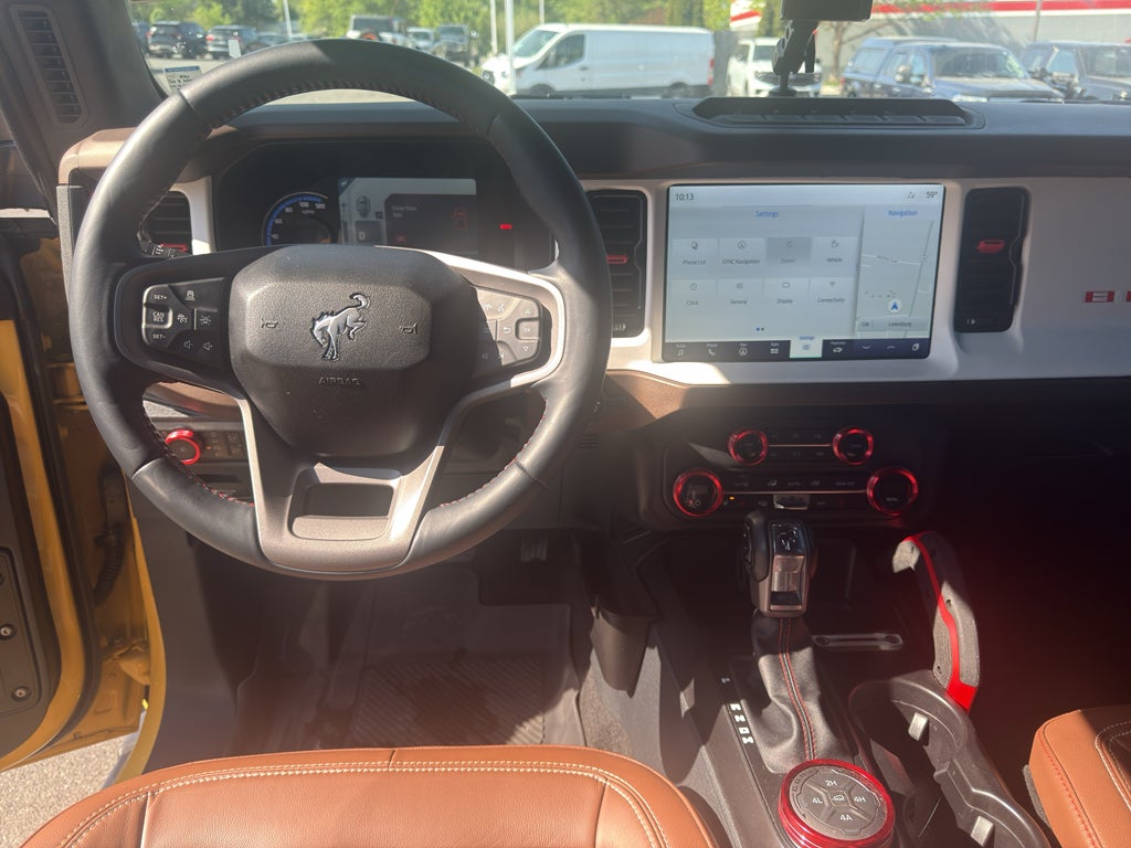 This Ford Bronco warns of approaching vehicles with Cross-Traffic Alert. Our dealership has already run the CARFAX report and it is clean. A clean CARFAX is a great asset for resale value in the future. See what's behind you with the back up camera on the vehicle. It has automated speed control that adjusts to maintain a safe following distance, enhancing highway driving convenience. This model offers Apple CarPlay for seamless connectivity. The installed navigation system will keep you on the right path. An off-road package is equipped on the vehicle. Start this model from inside with remote start. The vehicle features a hands-free Bluetooth® phone system. Keep your hands warm all winter with a heated steering wheel in the Ford Bronco . This vehicle offers Android Auto for seamless smartphone integration. Good News! This certified CARFAX 1-owner vehicle has only had one owner before you. The leather seats in this model are a must for buyers looking for comfort, durability, and style.