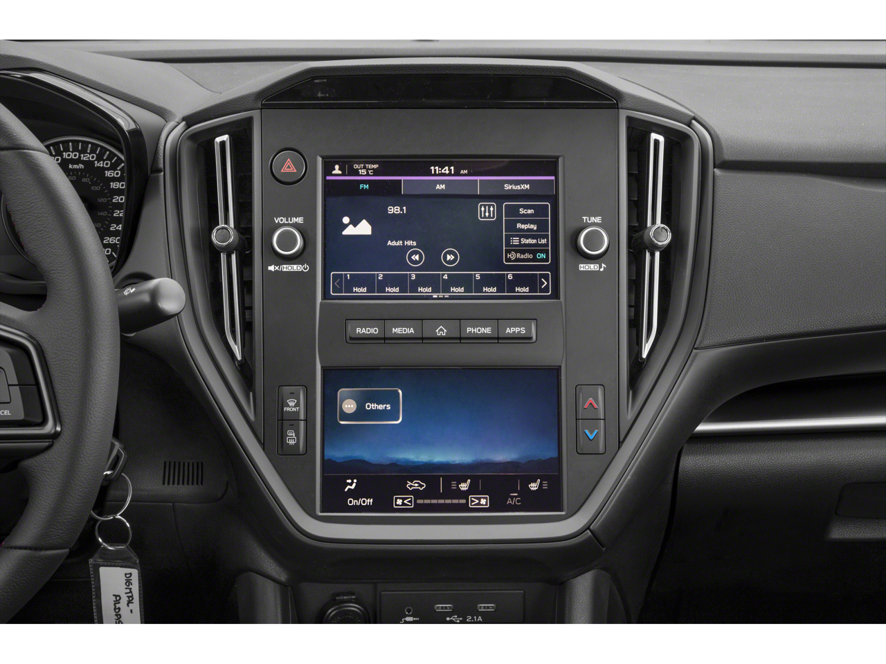 • Radio: Subaru STARLINK Dual 7" Multimedia Plus Sys -inc: AM/FM stereo HD Radio, multi-touch gesture high resolution display screen, voice activated controls, Bluetooth audio streaming connectivity, Bluetooth hands-free phone connectivity, Bluetooth hands-free SMS text messaging connectivity (applicable w/compatible cell phone), Near Field Communication (NFC), iPod control capability, rear-vision camera display, SiriusXM All Access radio (4 months free trial/subscription required after), SiriusXM Travel Link (4 months free trial/subscription required after), smartphone integration: Android Auto, Apple CarPlay, STARLINK cloud applications, 6 speakers and roof mounted audio and satellite antenna