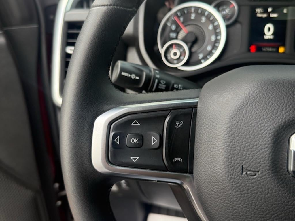 Big Horn Level 1 Equipment Group: 400W Inverter; Rear Window Defroster; Rear View Auto Dim Mirror; Power Adjustable Pedals; Leather Wrapped Steering Wheel; Rear Power Sliding Window; Exterior Mirrors with Supplemental Signals; Exterior Mirrors Courtesy Lamps; Glove Box Lamp; Auto Power-Folding Mirrors; Exterior Mirrors with Heating Element; Auto Dim Exterior Driver Mirror; 115V Auxiliary Power Outlet; Universal Garage Door Opener; Heated Front Seats; Heated Steering Wheel; Black Exterior Mirrors; Power Adjust 8-Way Driver Seat; 2nd Row in Floor Storage Bins; Convex Wide-Angle Exterior Mirror Insert; Black Premium Power Mirrors; Sun Visors with Illuminated Vanity Mirrors; Power 2-Way Driver Lumbar Adjust. Quick Order Package 23Z Big Horn: Big Horn Badge. Anti-Spin Differential Rear Axle. Trailer Brake Control. Delmonico Red Pearlcoat. MOPAR Front and Rear Rubber Floor Mats. **Equipment listed is based on original vehicle build and subject to change. Please confirm the accuracy of the included equipment by calling the dealer prior to purchase.**
